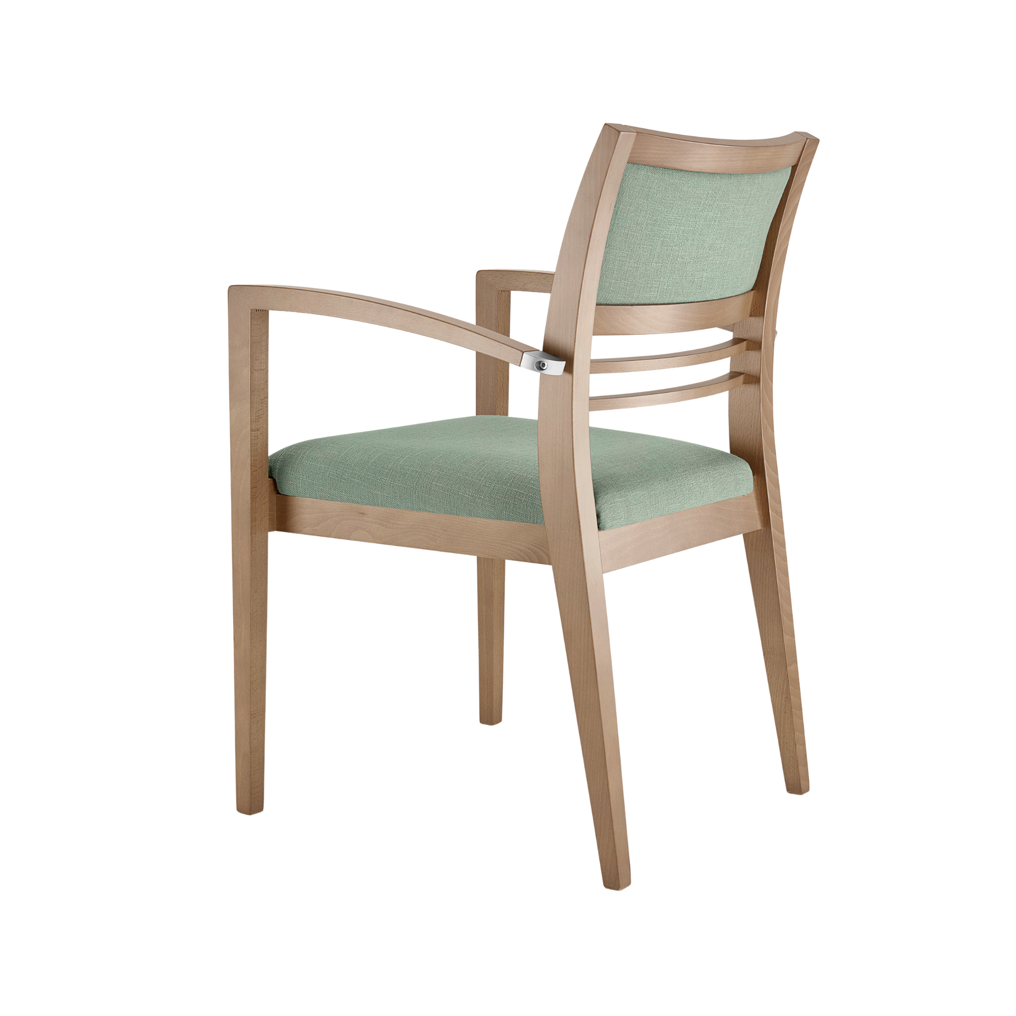 The Cassis M11CE Armchair combines traditional charm with modern comfort. Featuring an open-back slatted design, upholstered seating, and a solid beechwood frame.