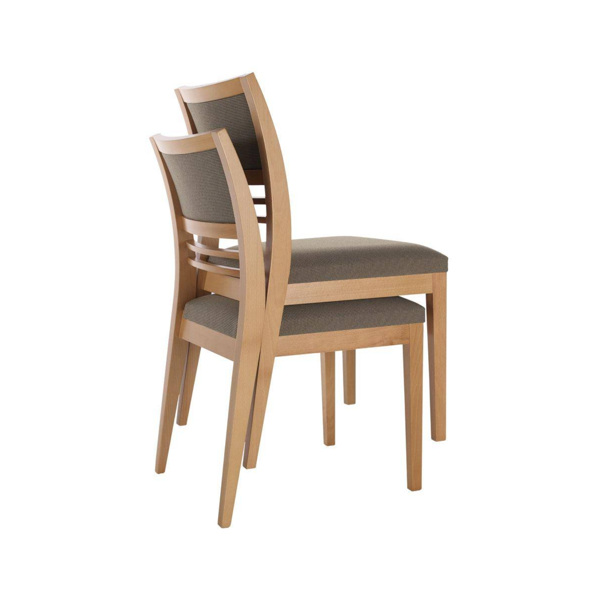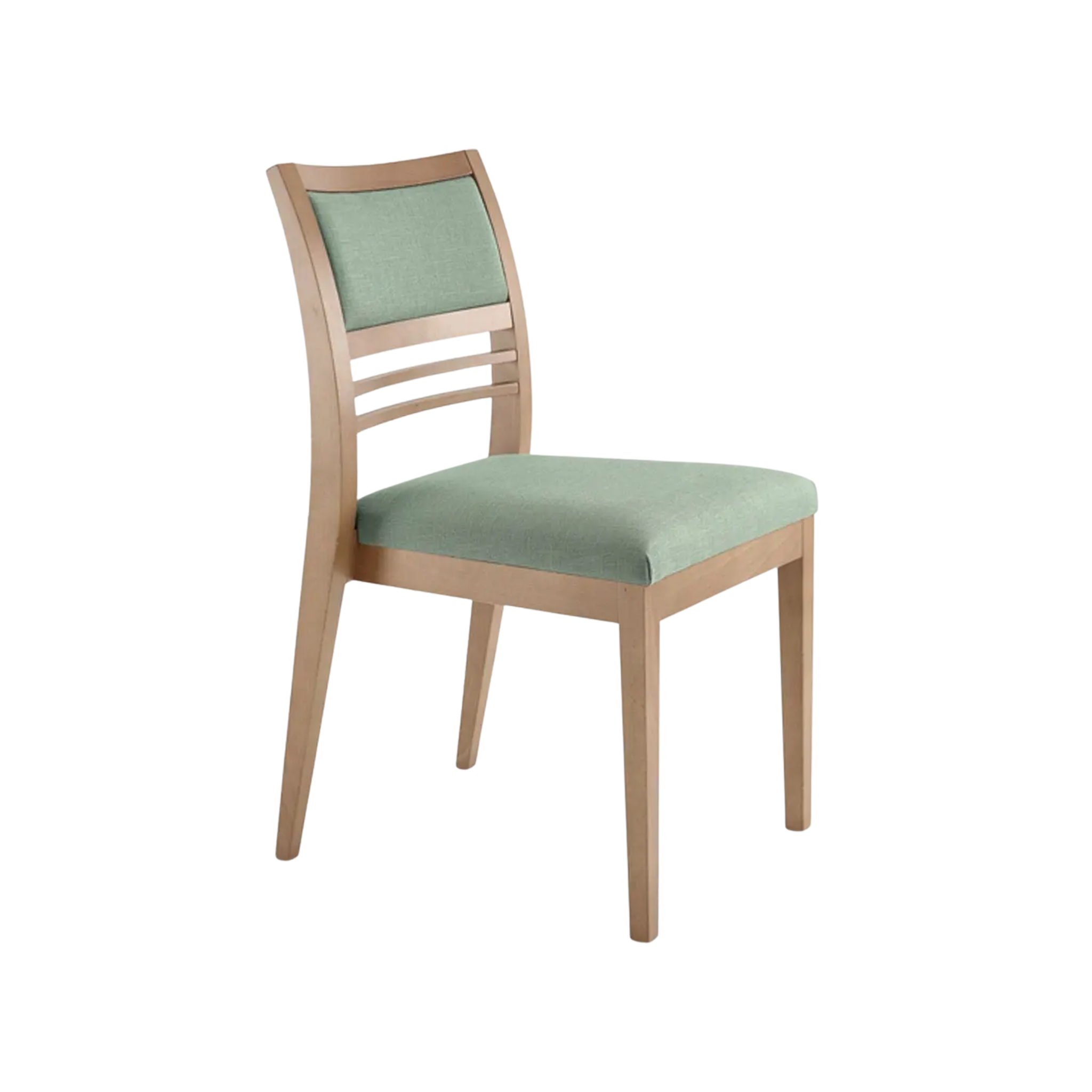 The Cassis M11E Side Chair combines traditional charm with modern comfort. Featuring an open-back slatted design, upholstered seating, and a solid beechwood frame.