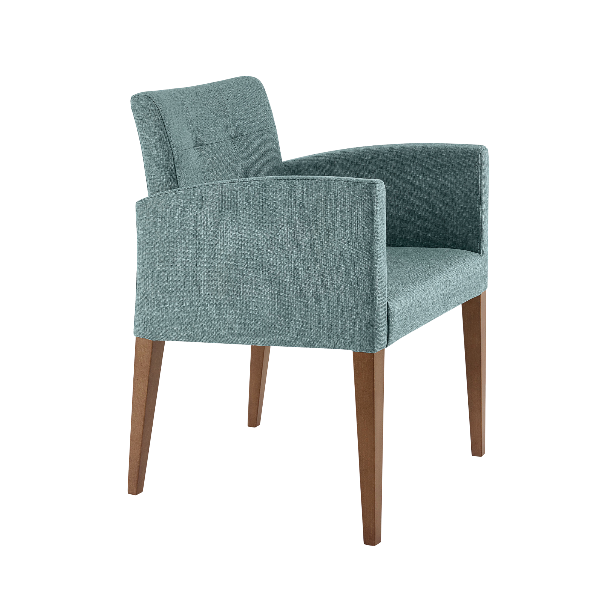 The Cassis M28 CR Armchair features a traditional closed-back design with full upholstery and an curved-arm beech frame, offering comfort and durable support.
