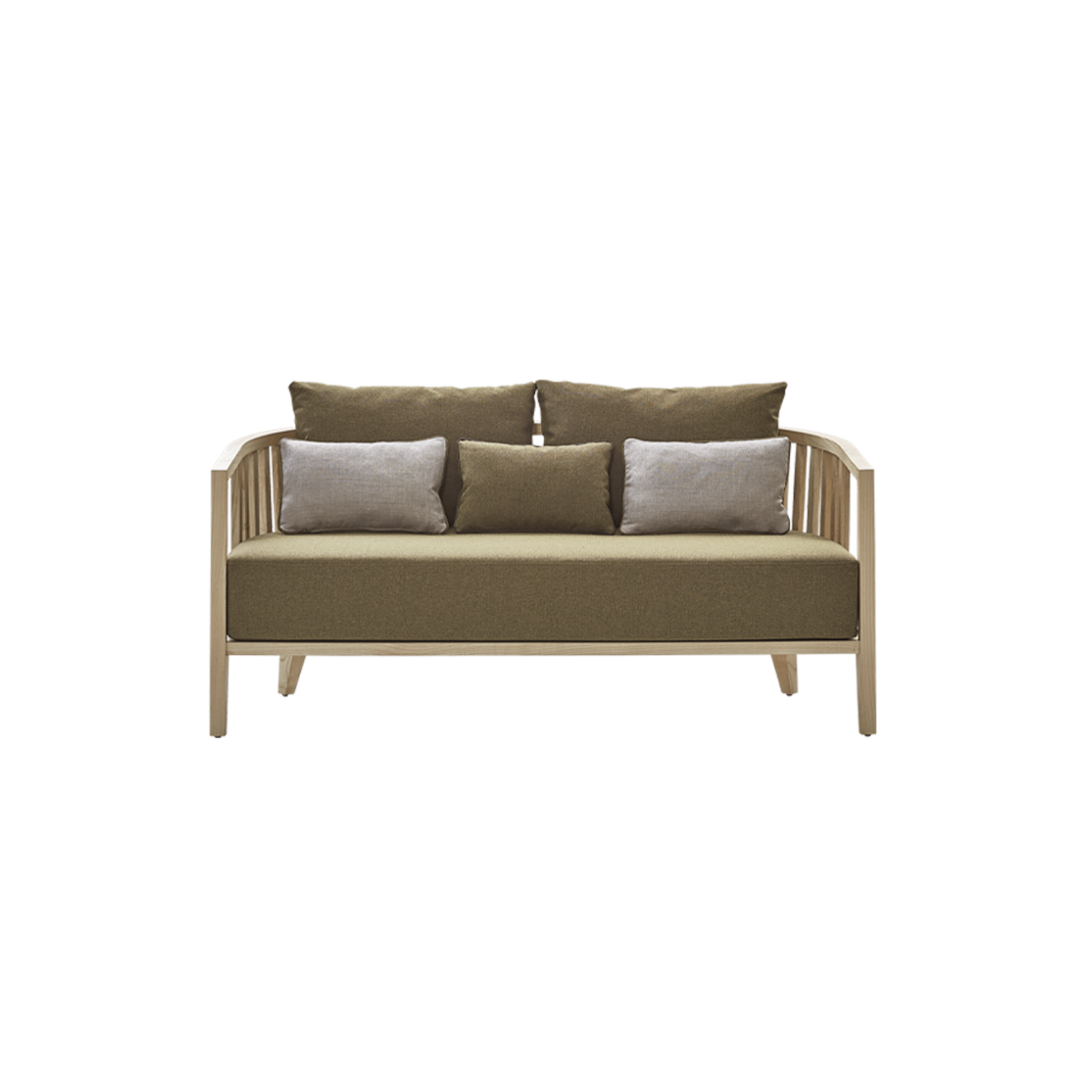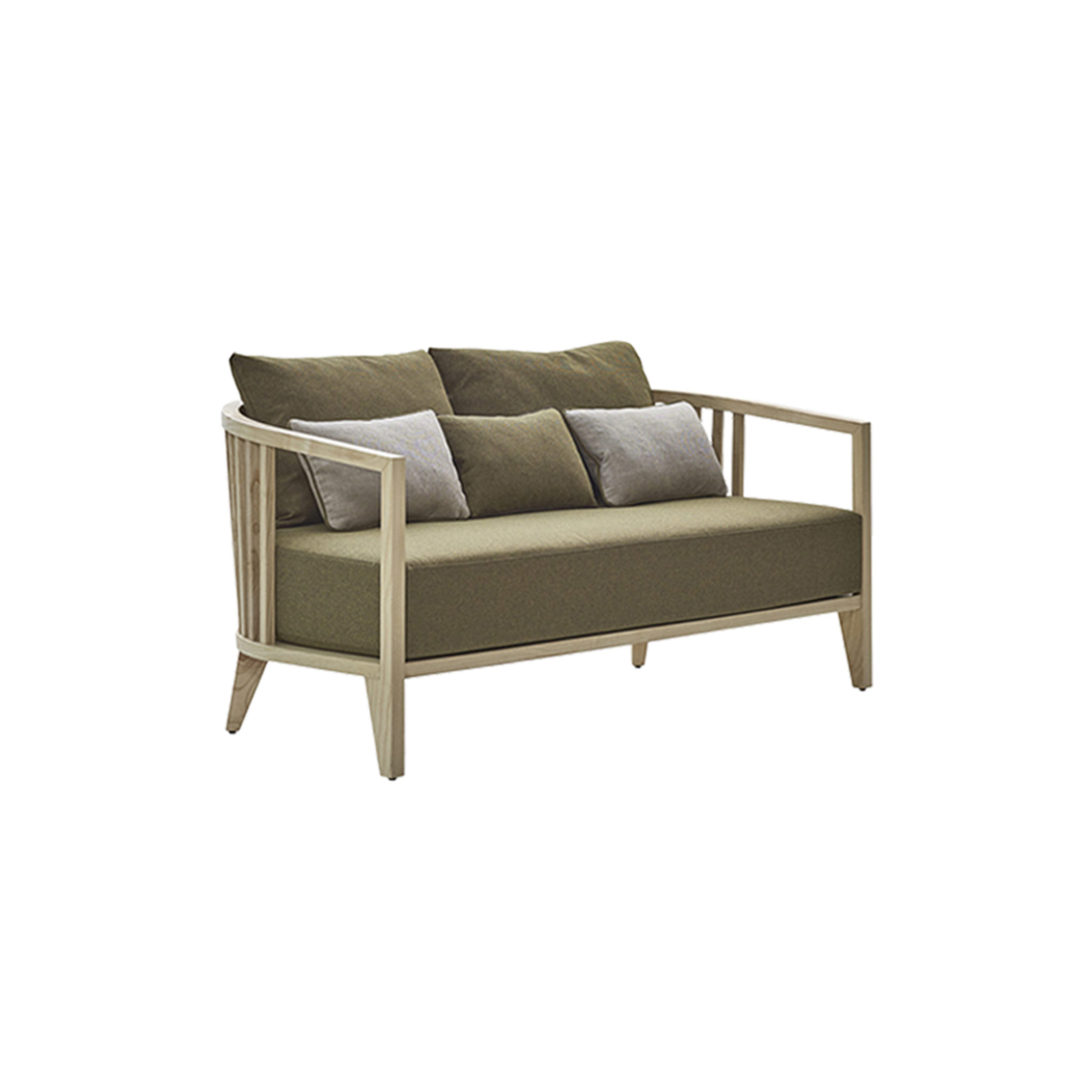 The Goba Sofa blends contemporary design with sophisticated European style, with its curved frame and artisinal accents. Great for luxury hospitality.