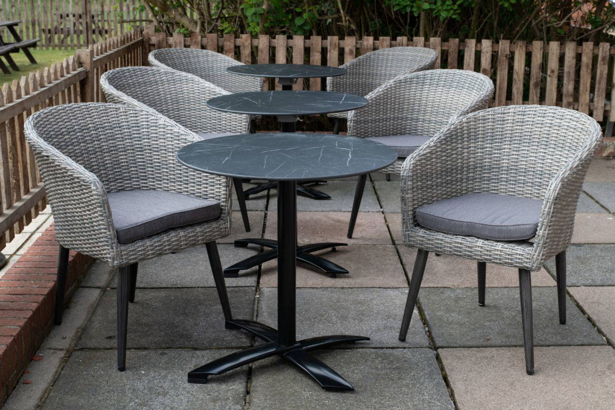 The Hanover Collection is a modern and comfortable style of outdoor chairs, with a weather-resistant rattan-weave shell and matching cushion for added comfort. It’s a great choice for cafes, pubs, restaurants and bars.
