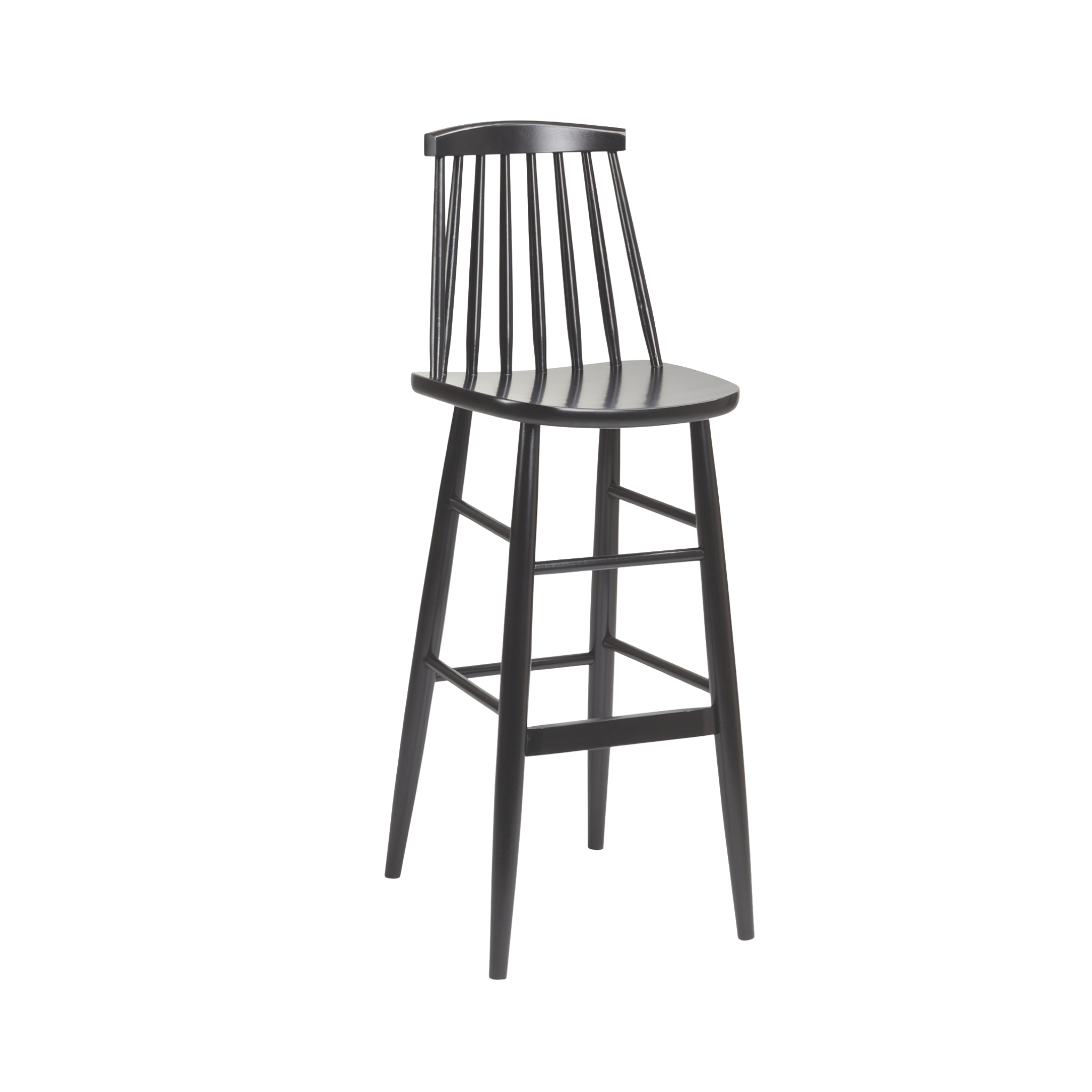 The Henley Spindle High Stool combines classic Windsor style with solid construction, featuring an ornate spindle-back for traditional charm.