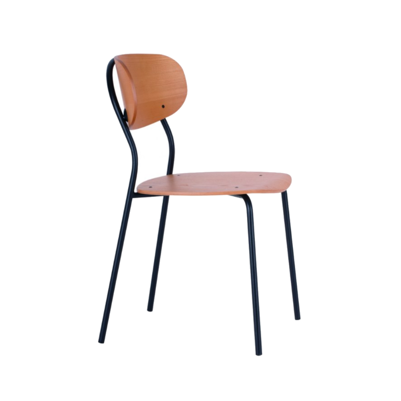 The Ooly Collection brings a fun and modern edge to hospitality settings with its rounded wooden back, slim metal frame, and lightweight form. Its playful shape and compact design make it ideal for casual cafes and bistros, canteens, student accommodation and busy dining environments.