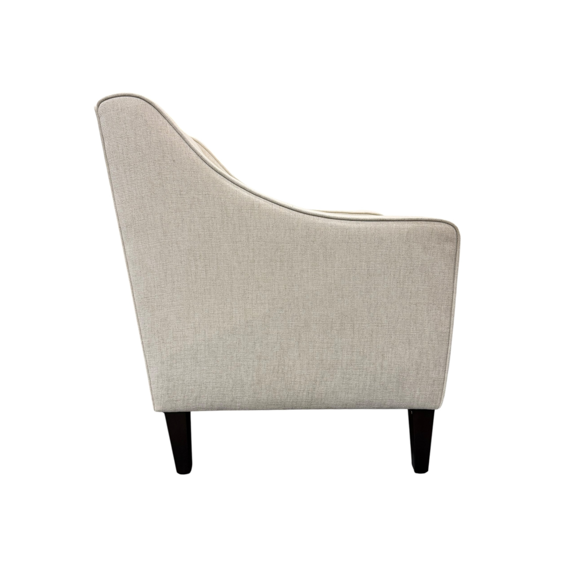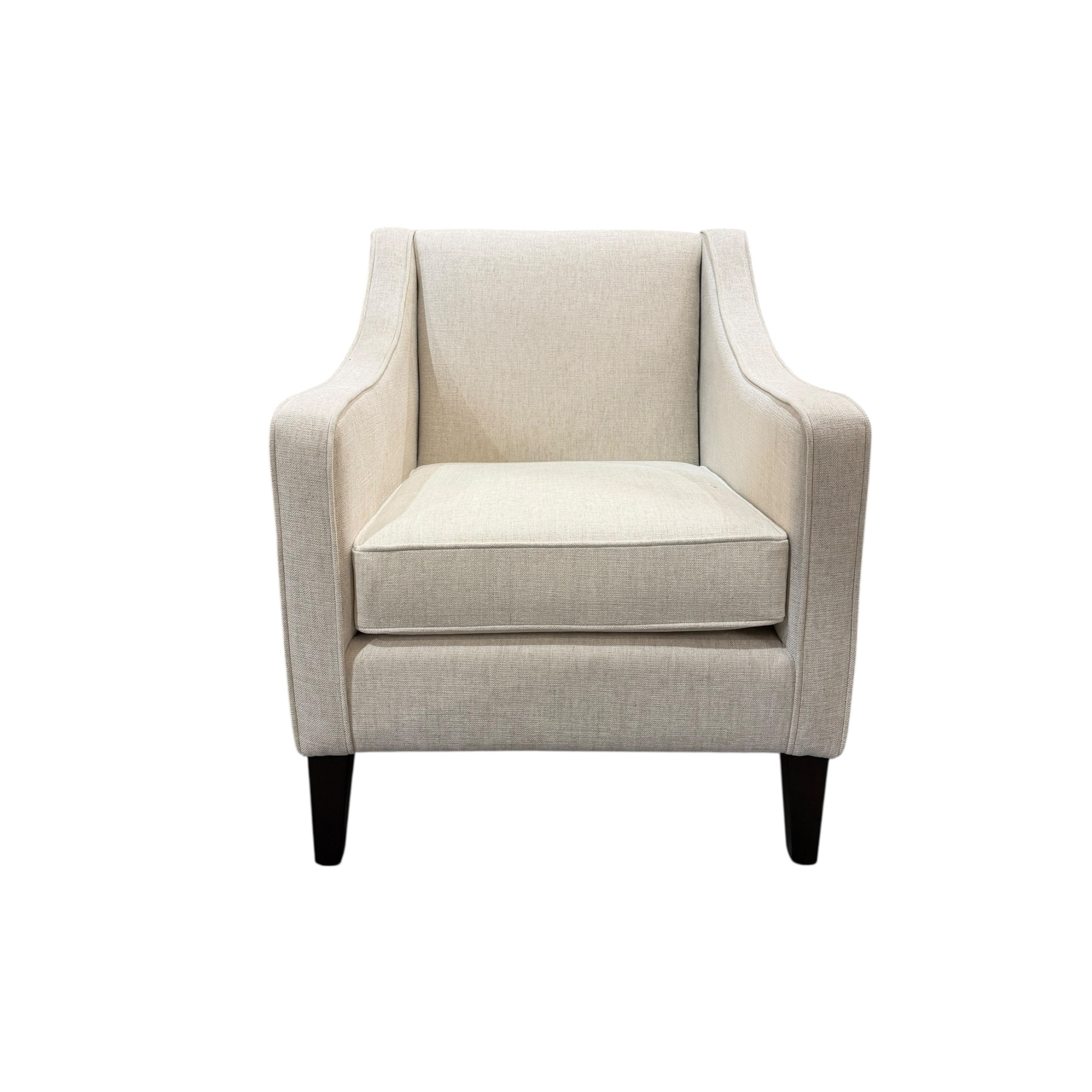 - Square back and sloped arms for a sleek silhouette