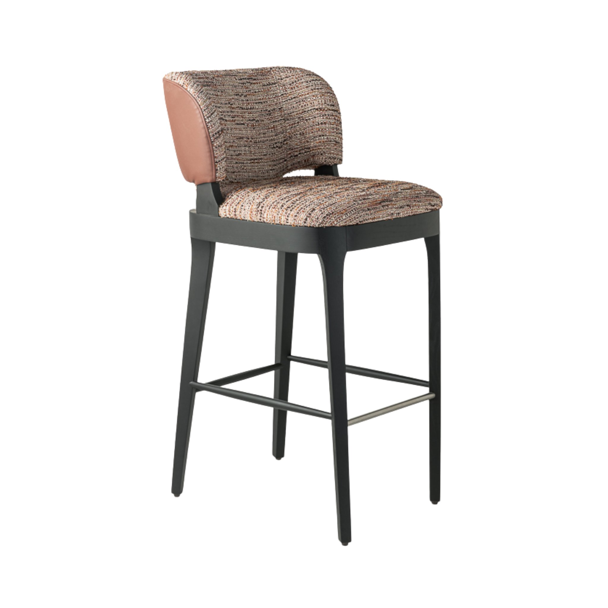 The Tea High Stool brings mid-century modern style to contemporary dining, with a solid wooden frame and contemporary contrast upholstery for added flair.