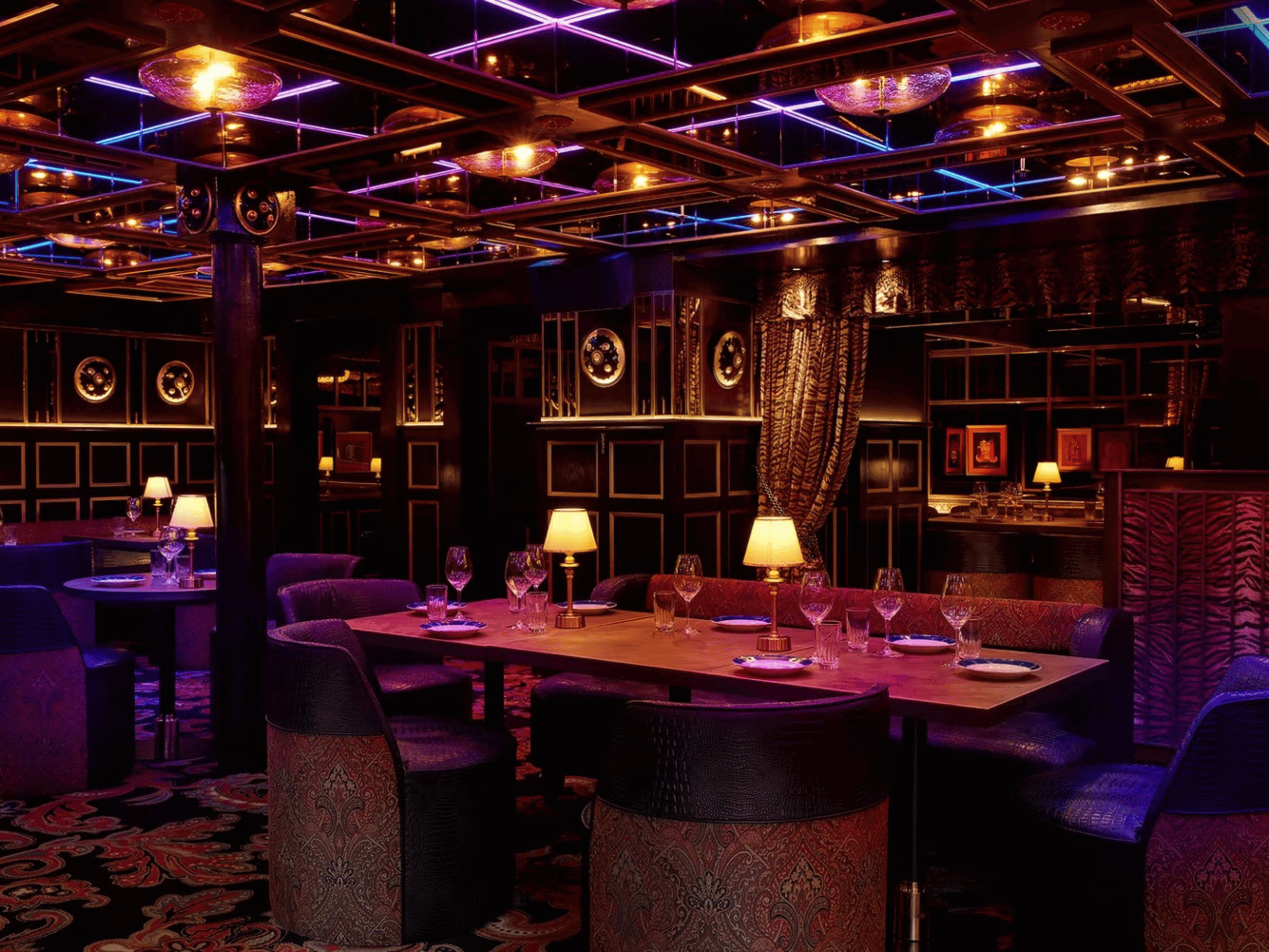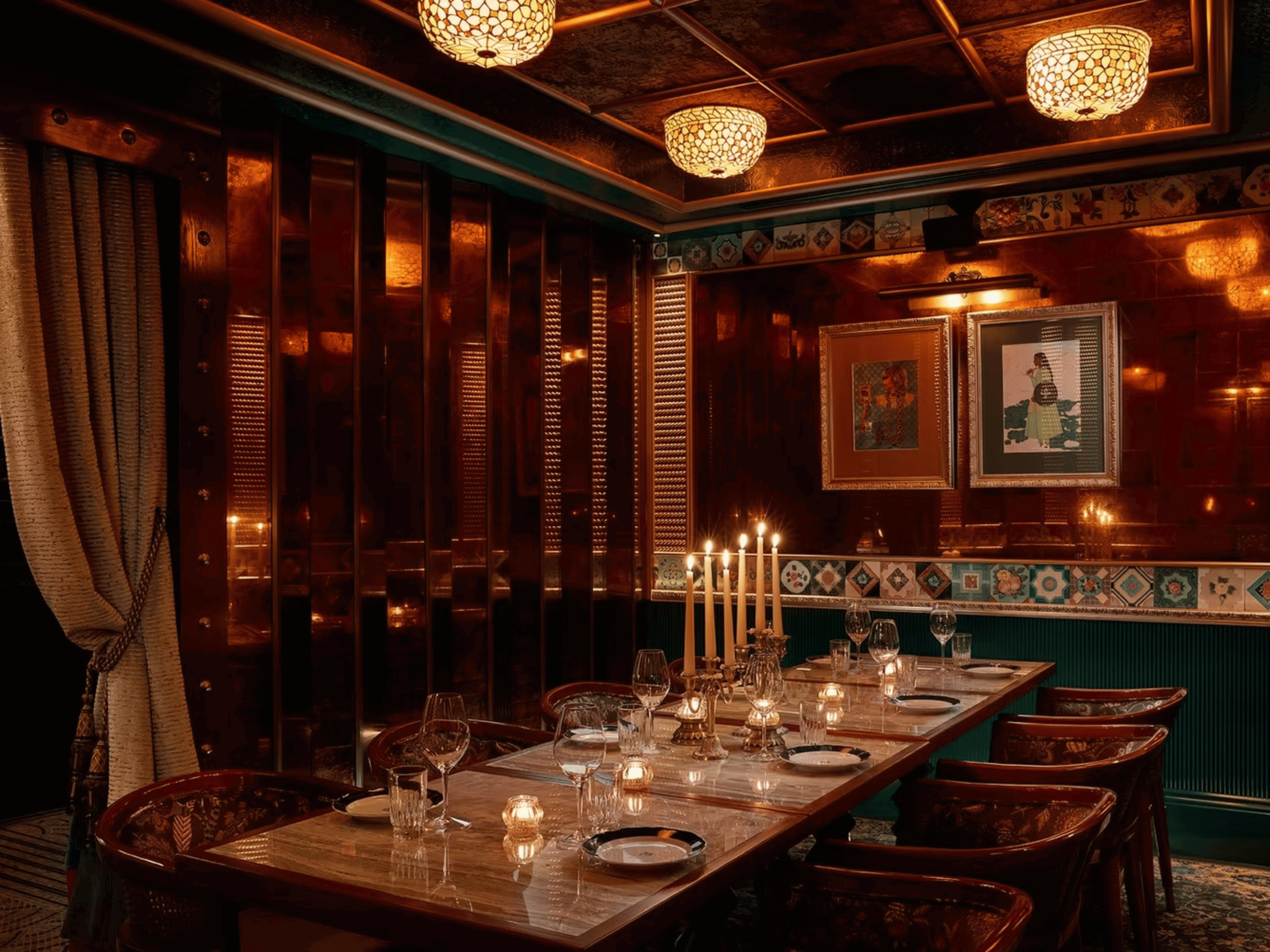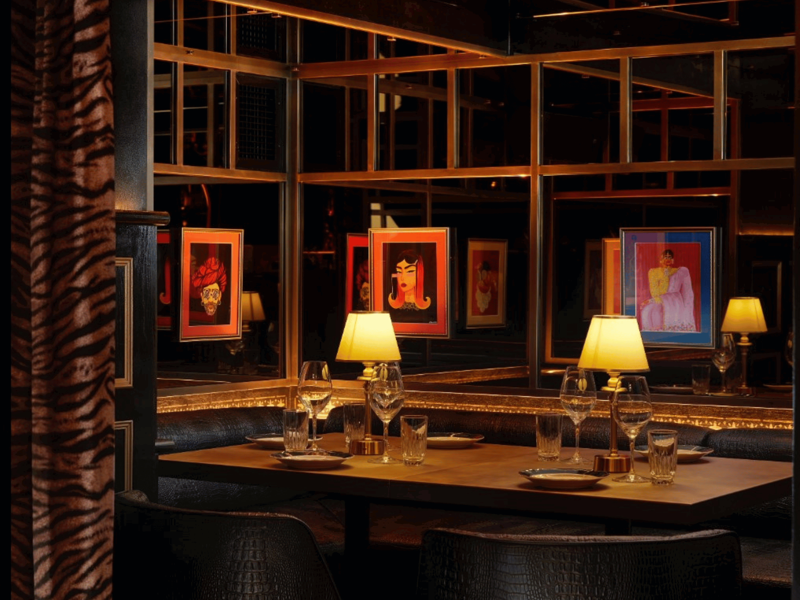 Working closely with interior designers, we created made-to-measure curtains to complement each room’s distinct aesthetic. In the Raja Rani Room, luxurious curtains helped define an intimate and tranquil dining space, blending traditional and Art Deco influences. For the Tamasha Room, rich velvet curtains added a sense of drama and exclusivity, while the Jungli Room featured vibrant animal-print designs that brought warmth, energy, and a touch of playfulness to the interior.